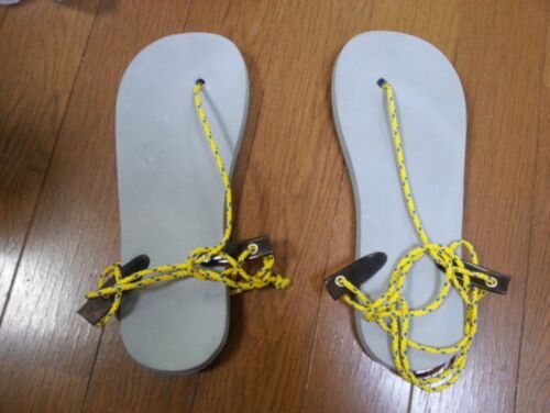 午前中にコーナン。 午後、家内の付き合いで木更津アウトレットに 行ったので、となりにあるカインズホーム。 そして100均。 これらで、手動ドリル、はとめ金具と取付具。 250円のビーチサンダル。紐3m。 こういったものを買ってきた。 まずは適当に…