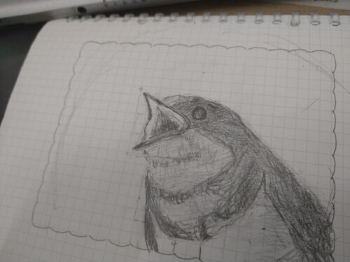 自分で撮影した鳥の写真で 気に入ったものを絵にすることを楽しんでいるが、 段取りを決めていて、最初は、ノートに 鉛筆で下絵を作る。 それを適当に拡大コピーして、画用紙上にトレースして それにもう1回鉛筆画をやって、その後、彩色していく。 最初から…